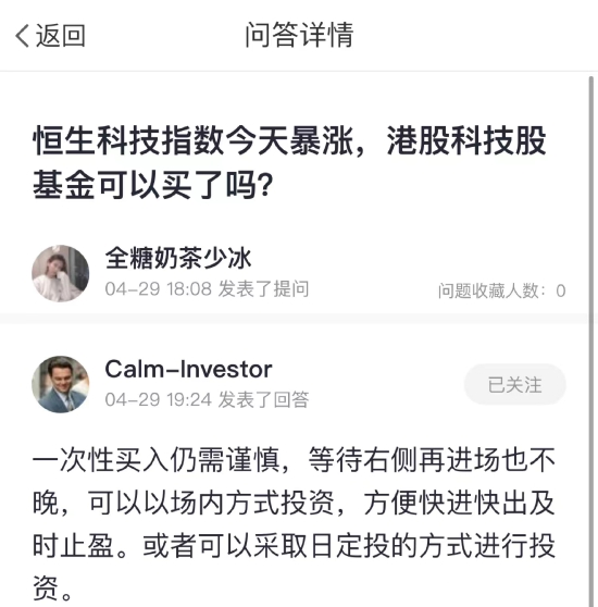 基金问答可以帮您快速匹配最适合的投资对象。您可以在基金问答中向众多资深基金大V提出你关于投资基金的疑问,基金大V们会迅速的回答你的问题。你也可以浏览其他基友提的问题和大V的解答,让你的投资力不断UpUpUp!
