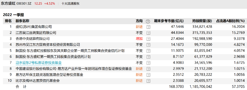 同时,迎水投资旗下的迎水征东2号私募基金持有东方盛虹3456.56万股,期末持股市值为4.91亿元,较去年底并没有什么变化。