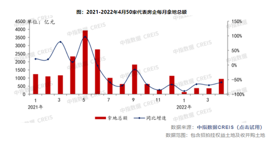 中指研究院的数据也显示,4月,50家代表房企拿地总额同比下降59.4%。