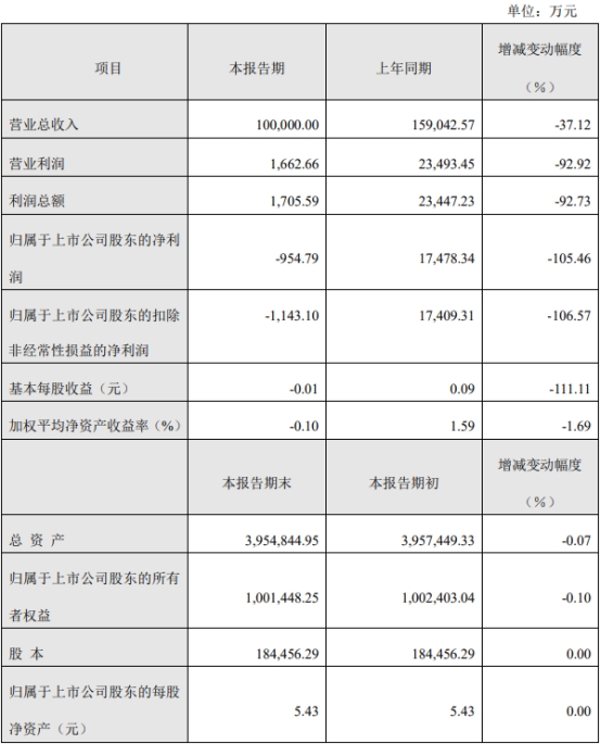 上实发展同日发布的2022年第一季度业绩快报公告显示,公司2022年第一季度营业总收入为100,000.00万元,同比下降37.12%;归属于上市公司股东的净利润为-954.79万元,同比下降105.46%;归属于上市公司股东的扣除非经常性损益的净利润为-1,143.10万元,同比下降106.57%;总资产为395.48亿元,较年初下降0.07%;归属于上市公司股东的所有者权益为100.14亿元,较年初下降0.10%。