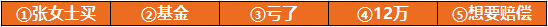首先,我们先把核心问题本身抽取出来:将“一个87岁张姓老太太,买基金亏了12万,来网点要赔偿。”聚焦为“张女士买基金亏了12万,想要赔偿。”