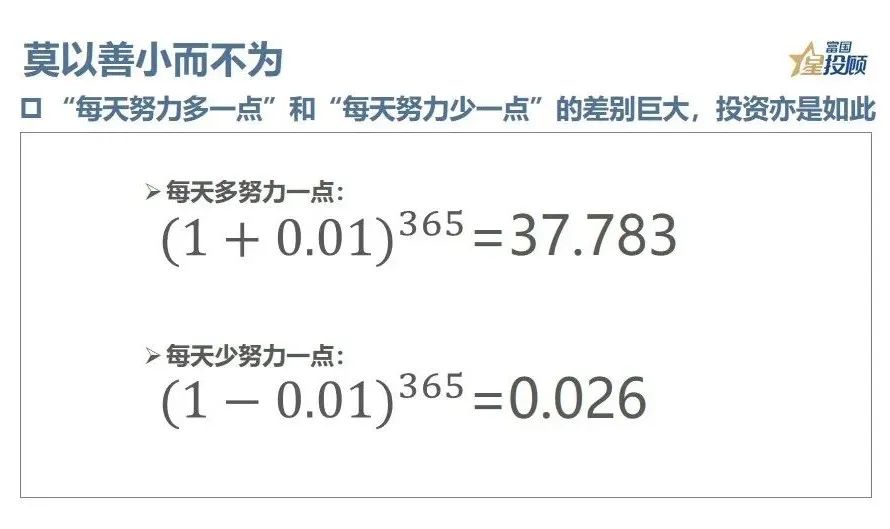 2、享受复利,越老越富有。复利本是个简单的算术问题,也是投资中的大道至简,但简单的力量并不简单,这也是为什么,复利会被誉为世界第八大奇迹。若是借别人的钱利滚利,越借越难翻身;但若是让自己的钱利滚利,时间越长越富有。