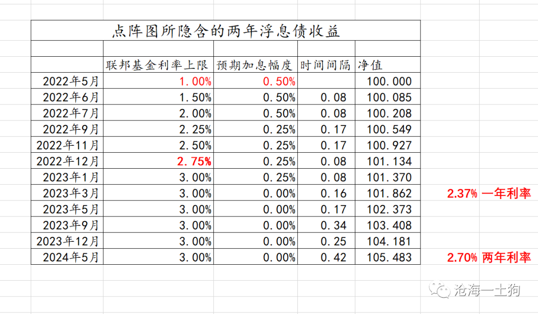 按照50+50+50的路径,并加上不超过3%这个条件,我们可以自制一只两年浮动利率的美债。