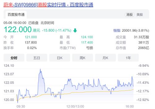此前,蔚来曾在今年3月以介绍方式登陆港股市场,并同时申请了在新加坡上市。在港上市首日报收158.9港元/股,相比前一日美股收盘价略有溢价。