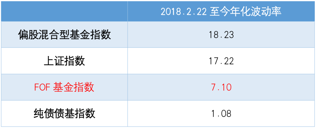 此外,FOF基金长期控波动效果也比较好,FOF基金指数自基日以来年化波动率为7.1%,高于纯债债基指数,但相比沪指和偏股混合型基金指数,FOF基金指数的年化波动率大大降低。