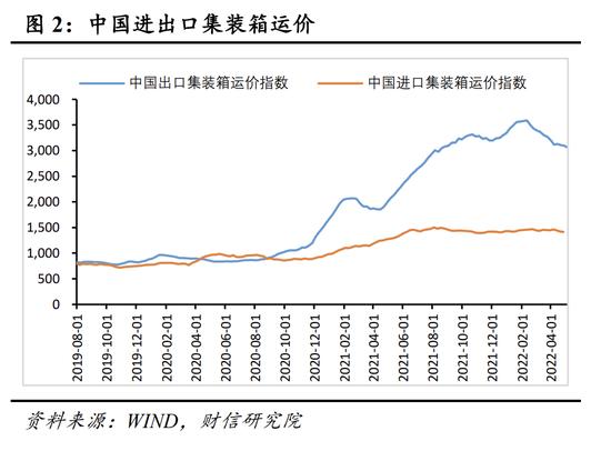 当前国内疫情引发的港口运力紧张主要影响内贸,对进出口的冲击较小。尽管国内主要港口近期受疫情冲击较为严重,防疫政策有所收紧,但对疫情防控措施较为严格的外贸集装箱运输影响相对有限。4月份我国八大枢纽港口内贸集装箱吞吐量同比减少4.4%,外贸集装箱吞吐量同比增长1.9%,维持正增长(见图1),因此港口运力问题不是导致4月份我国进出口偏弱的主要原因。