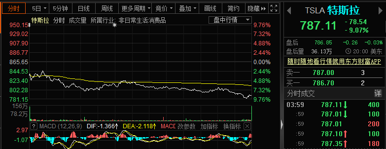 近日,特斯拉股价亦是出现暴跌,北京时间昨晚,该股跌破800美元,跌幅超过9%。