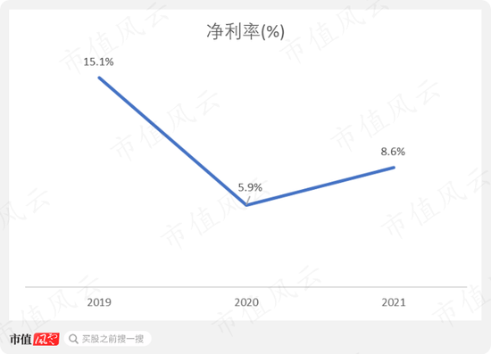 2021年的净利率为8.6%,而2019年的净利率可以达到15%以上。需要注意的是,公司没有把营业成本这一科目单独列出来。所以,公司的毛利率是无法计算出来的。