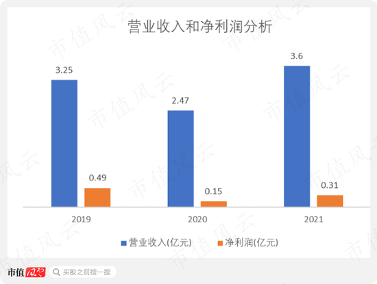 公司营业收入从2019年的3.25亿元下降至2020年的2.47亿元,后来又回升至2021年的3.6亿元。2020年营收下降主要原因自然是疫情。