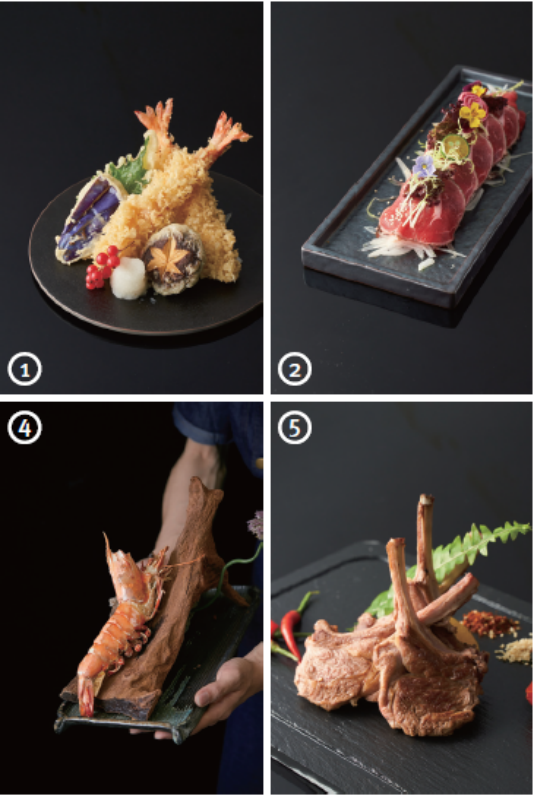 下图展示的是上井餐厅的主推菜品,包括天妇罗、和风熏牛肉、刺身拼盘等常见的日本料理。