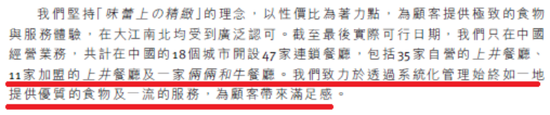 上井餐厅集团旗下的核心品牌是上井,公司目前共有35家自营的上井餐厅,外加11家加盟的上井餐厅。
