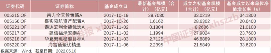 2017年首批成立的6只公募FOF,除南方全天候策略之外,另外五只FOF最新基金规模相较于成立时皆出现不同程度的缩水,其中,缩水最多的产品较成立之初规模减少超40亿元。