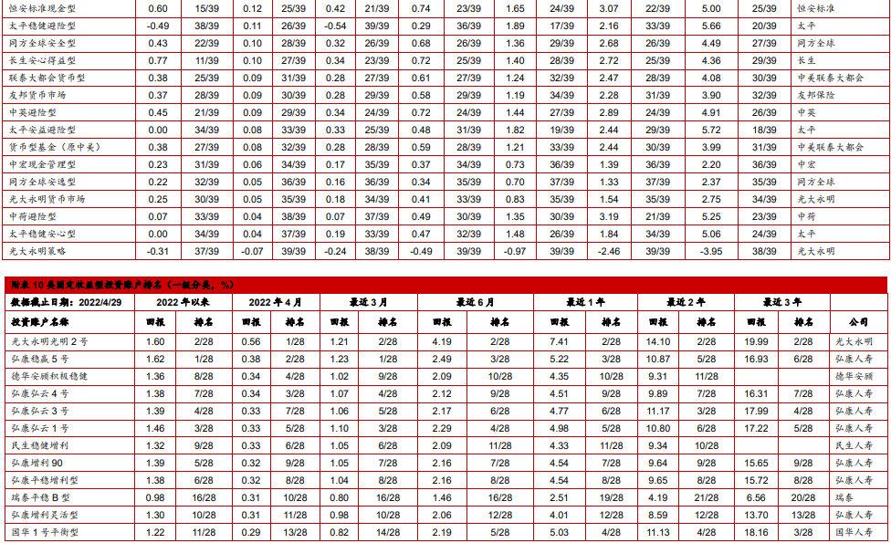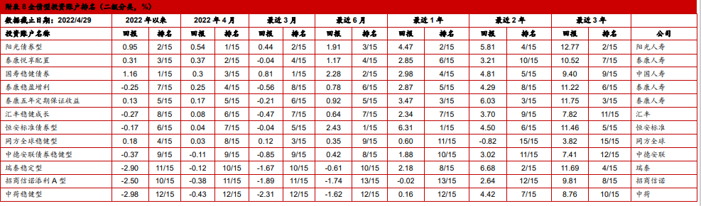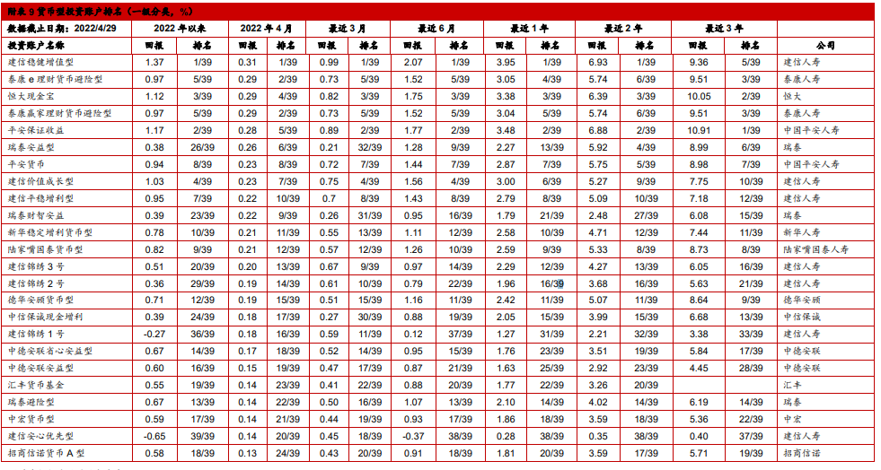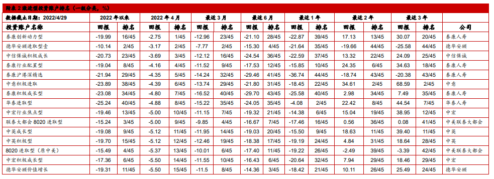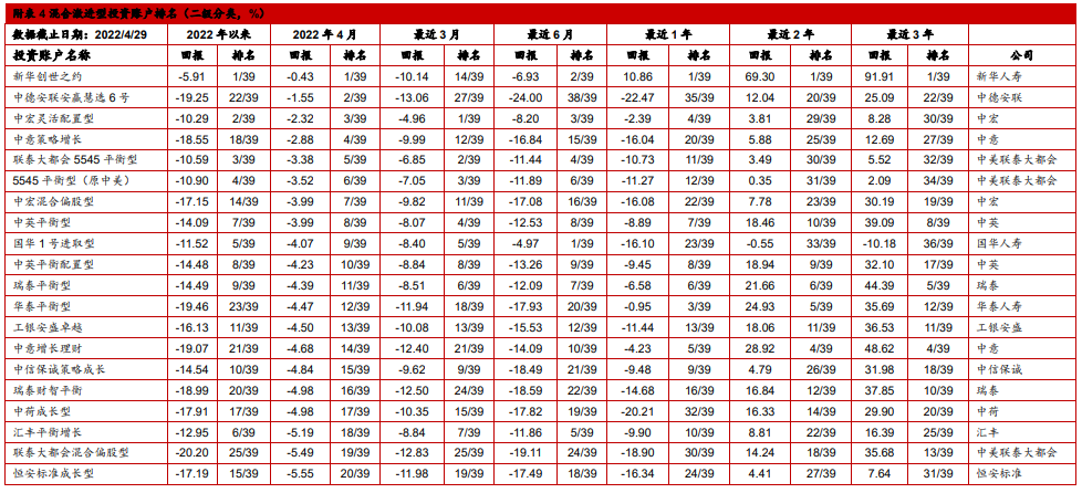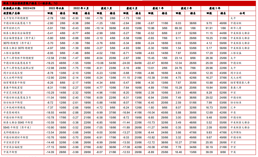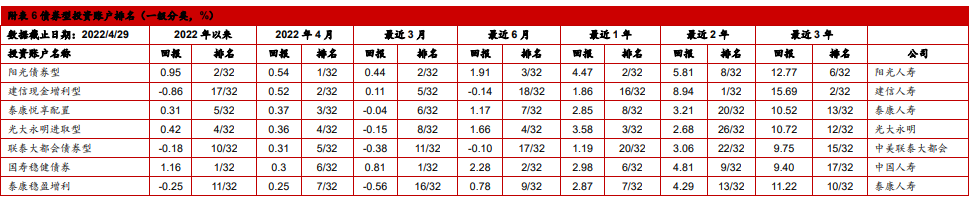 4. 中国投连险2022年4月分类排名