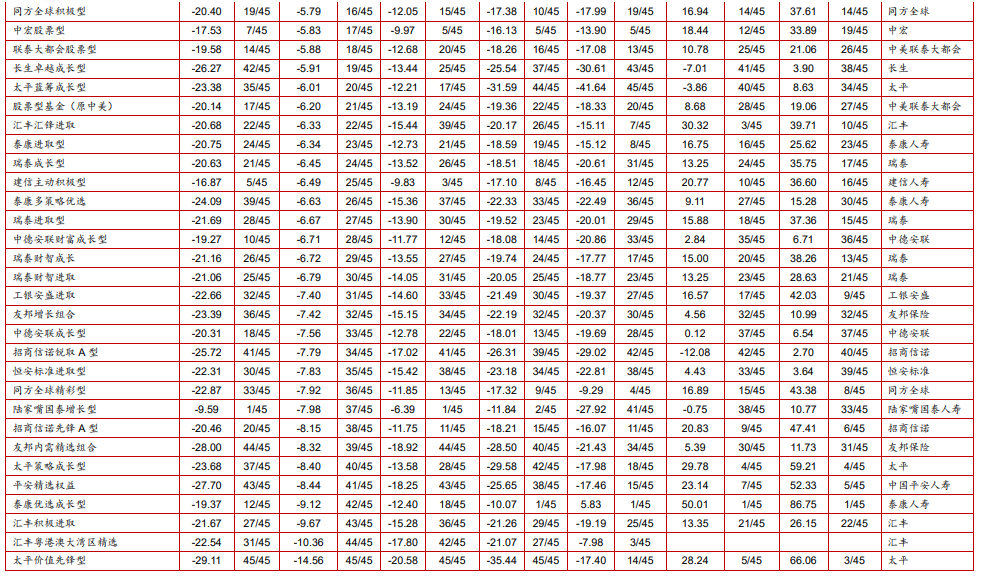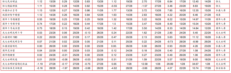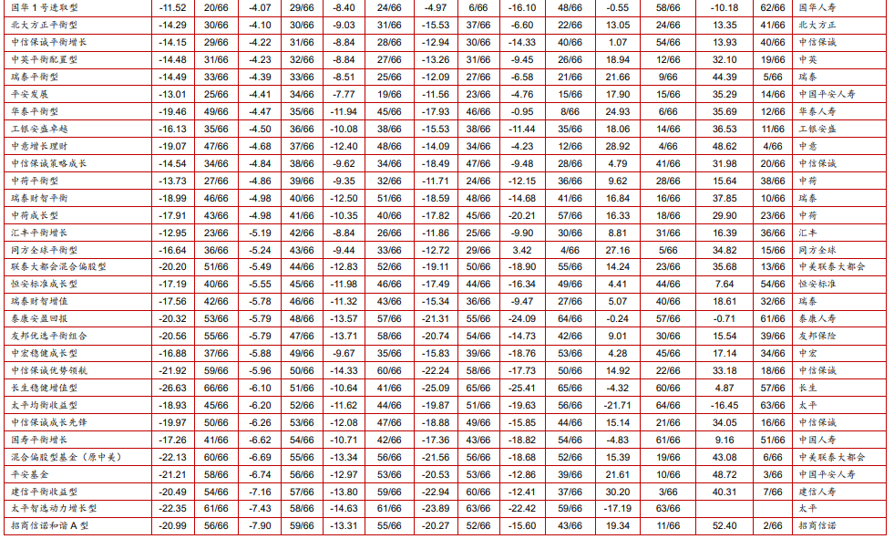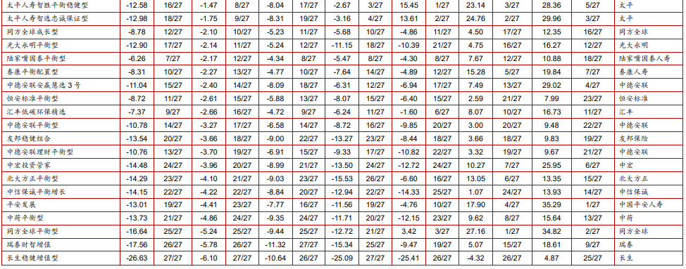 附表:华宝投连险分类排名