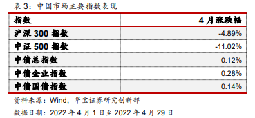2022年4月中国市场主要指数表现如下表: