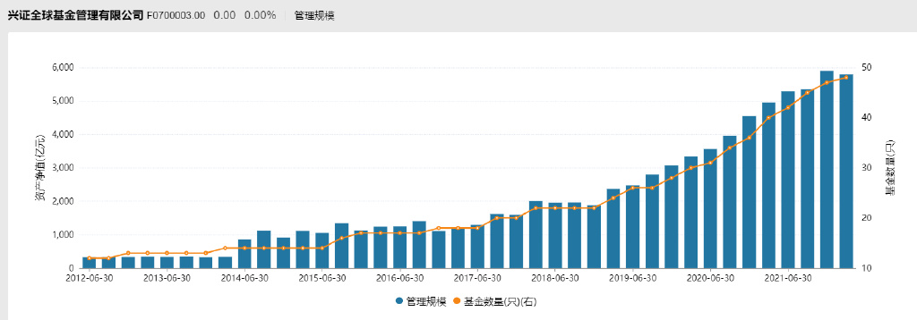 截止2022年3月31日,兴证全球基金的管理规模为5,792.87亿元,可在2021年12月31日,兴证全球的管理规模为5,901.18亿元。此前兴证全球的管理规模一直稳步上升,这次是近3年来兴证全球管理规模的唯一一次下跌。