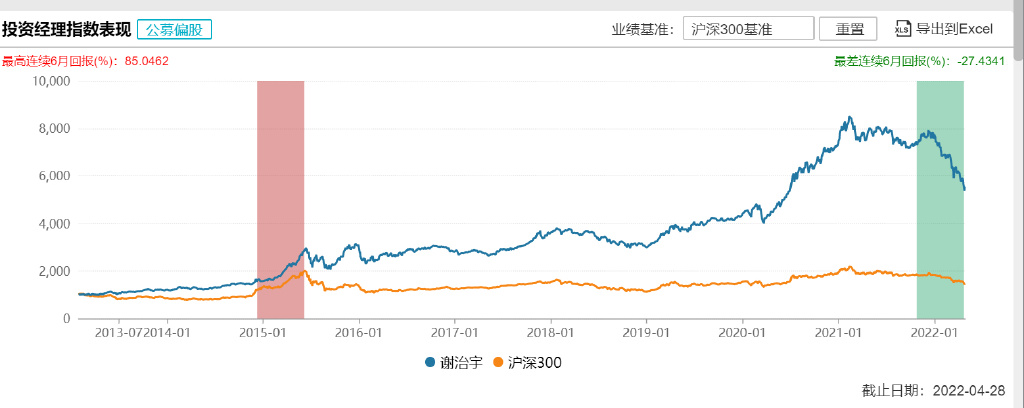 (谢治宇投资经理指数表现,截图日期:2022年4月29日,数据来源:Wind)