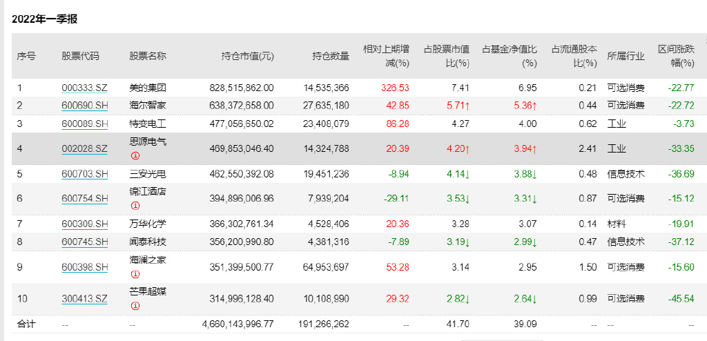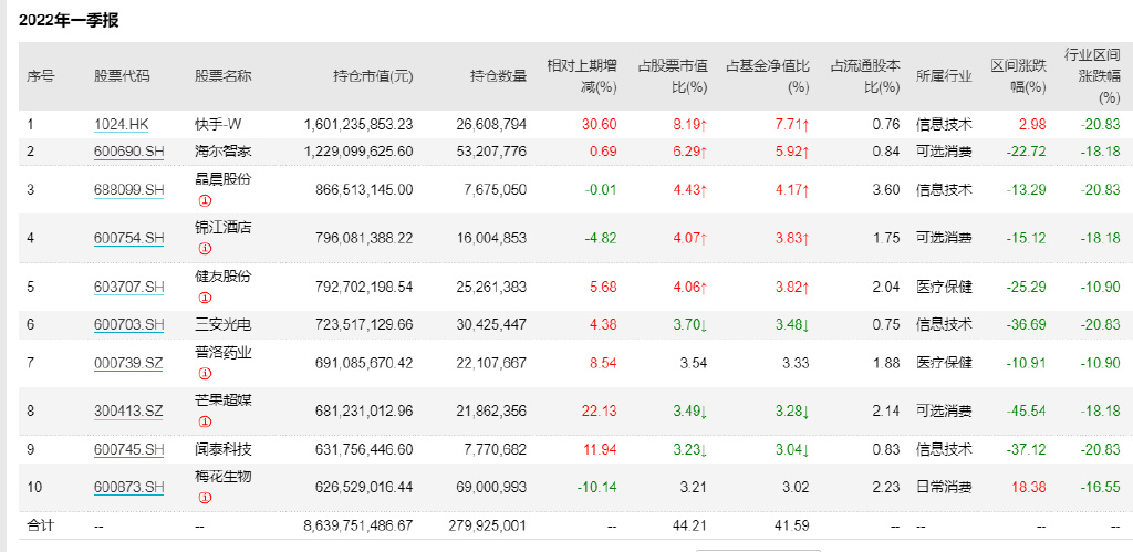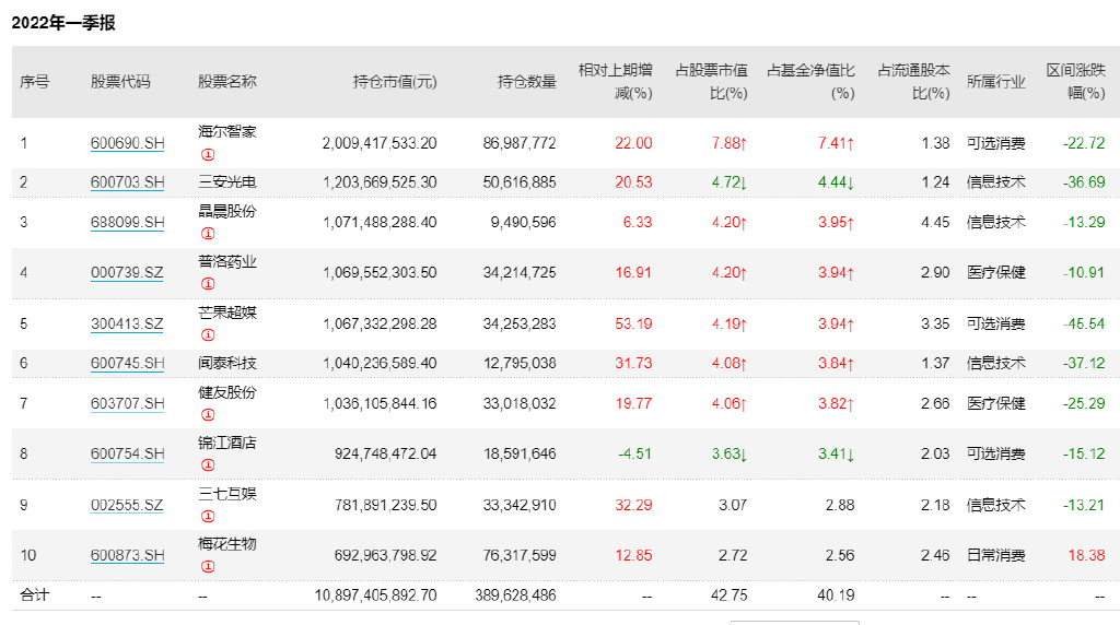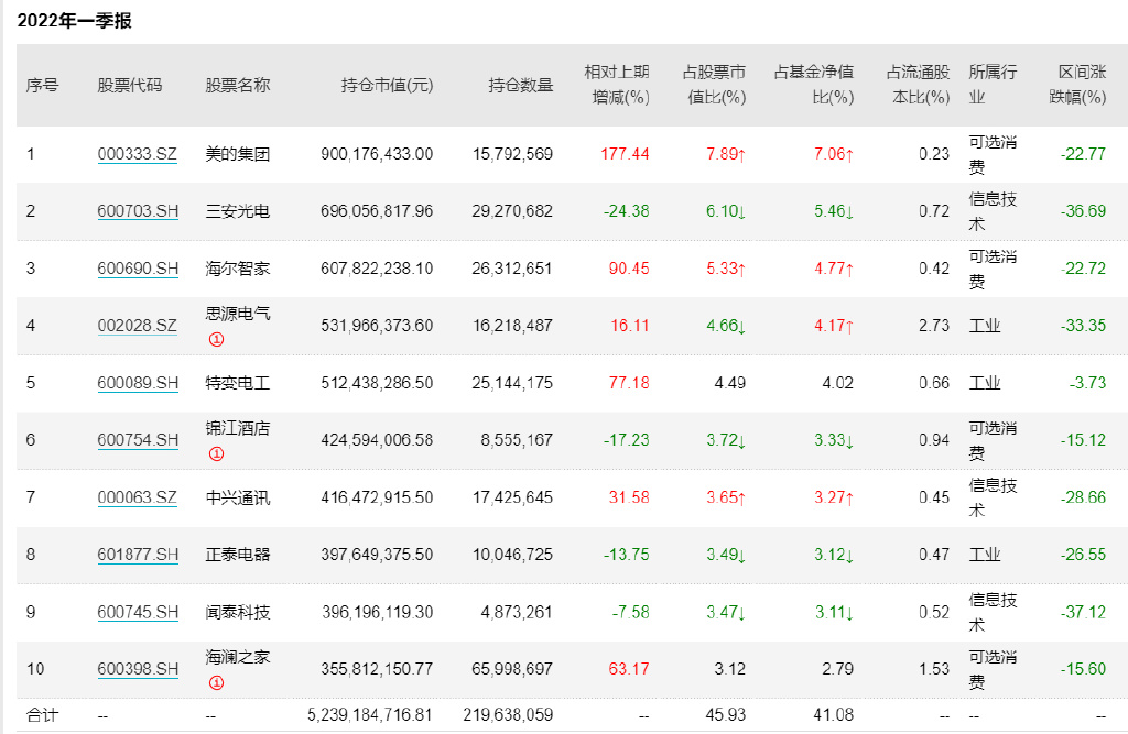 (“兴全趋势投资”2022年一季度前十大重仓股,截图日期:2022年4月29日,数据来源:Wind)