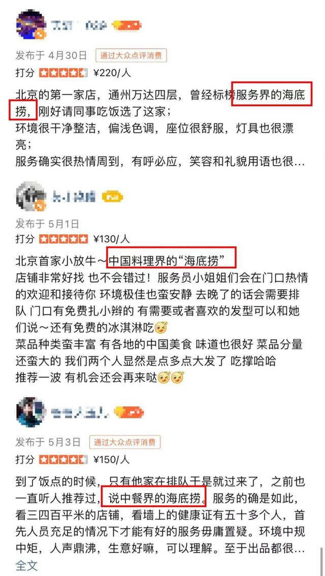 尤其是在去年2月,小放牛在北京开出首店,原本熟知度并不高的小放牛以“炒菜界的海底捞服务不满意免单”的口号活跃在多个社交平台,当时在大众点评的通州美食热评榜上排名第一。从消费者的评价中也可以看到,消费者被上述口号所吸引前来体验的居多。