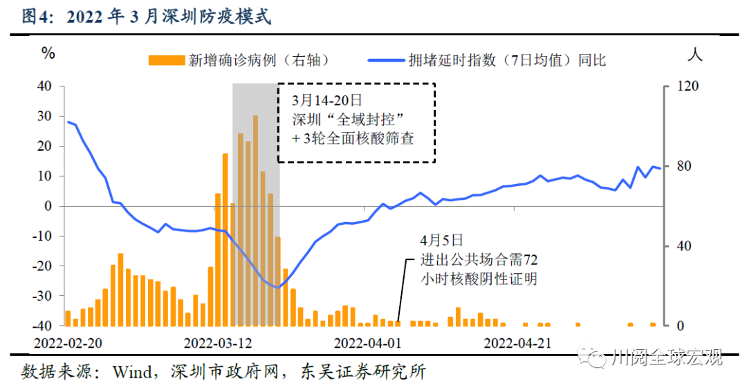 深圳模式:“全域封控”+ 3轮全面核酸筛查,适合疫情扩散的极端情形。如图4,本轮深圳疫情肇始于2022年2月中旬境外输入病例的扩散,呈现“点多面广,传播链条复杂,社区传播和外溢的风险较高”的特点,3月12日本土新增病例跳升至66例(含无症状感染者),3月14日至20日,深圳市实施“封控”+ 3轮全面核酸筛查,随后疫情得到控制、经济逐步恢复。为防范疫情反弹,4月5日深圳市宣布居民出入公共场合和搭乘公共交通须出示72小时核酸检测阴性证明,开始实施常态化核酸检测。