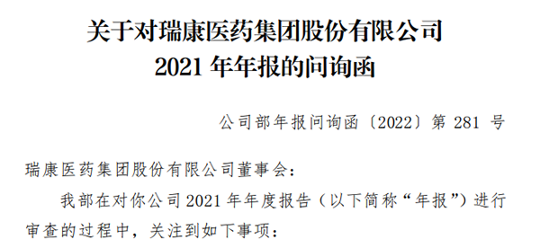 热点栏目 中国网财经5月16日讯(记者 杜丁)今日,深交所向瑞康医药发出年报问询函,要求其就“子公司失控”等问题进行解释,并要求公司于2022年5月23日前书面回复该函件。