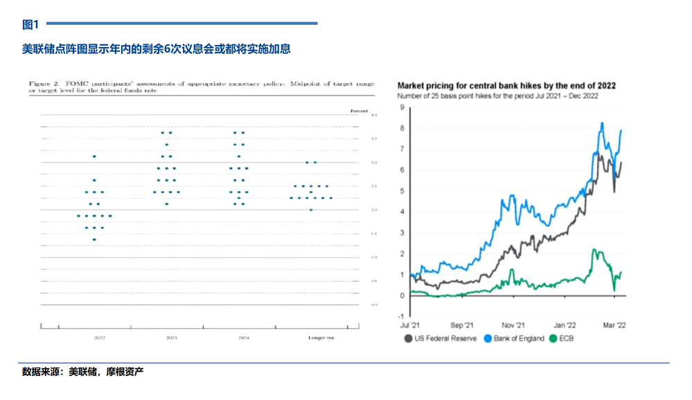 按照目前的点阵图,年内共7次25BP加息以及明年3次25BP的加息,共计十次加息。但议息会后,多位联储官员表达了更为强烈的加息意愿,认为应当有几次50BP的加息才能对抗目前的高通胀环境风险。