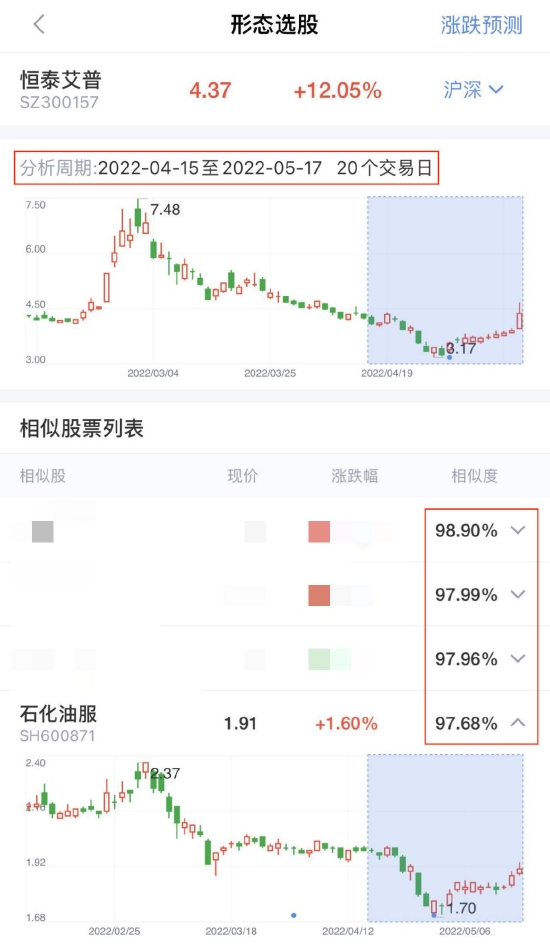 而第一名神秘个股相似度更是接近99%!那么,也就意味着,这只神秘个股更有可能复制恒泰艾普的反弹势头!