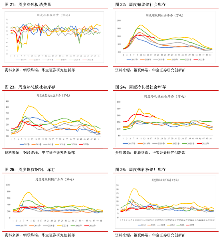 整体来看,目前疫情已在逐步好转,社会面清零指日可待 ,上海复工复产也在持续推进,疫情的影响将有所减弱。二是“稳增长”政策力度不断加大,近期央行在答记者问中也提及加大稳健货币政策的实施力度,更好发挥货币政策工具的总量和结构双重功能,加快落实已出台的政策措施,积极主动谋划增量政策工具 ””,预计后续货币和财政政策将共同发力。后续钢材消费将有较大改善预期。