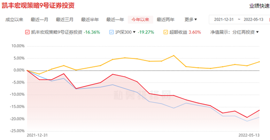 据私募排排网,截至今年5月13日,凯丰投资代表产品收益为-16.36%。