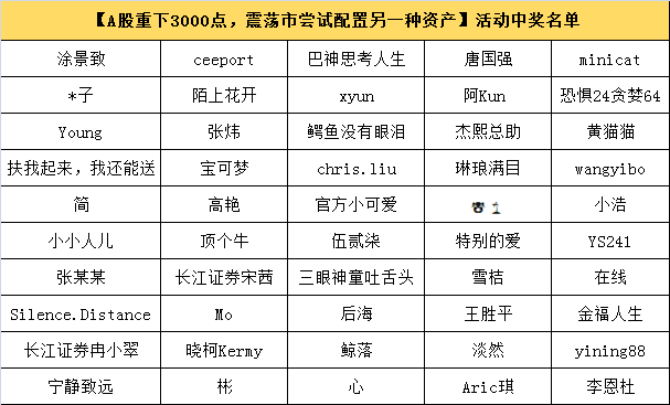 最后,附上上一期活动中奖名单,(正确答案为:AAA),感谢大家的积极参与!