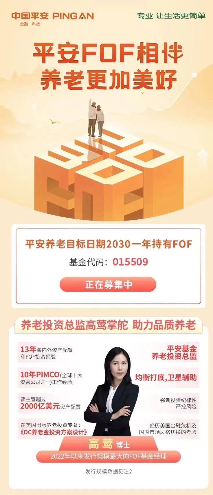 注:1、高莺从业经历说明:高莺,浙江大学硕士,美国爱荷华州立大学博士,曾先后担任联邦家庭贷款银行资本市场分析师、美国太平洋投资管理公司(PIMCO)养老金投资部投资研究岗。2019年1月加入平安基金管理有限公司,现任 FOF投资中心养老金投资团队投资执行总经理。