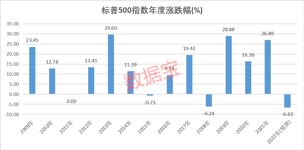 与往日不同的是,汇丰本次是下调点位,对美股悲观预期较年初升温。假设年底收盘点位至4450点,那么标普500指数2022年跌幅或达到6.63%,跌幅创近14年最大值。然而,当前标普500指数位于3900点左右,若年底收至4450点附近,意味着美股有望迎来反弹。