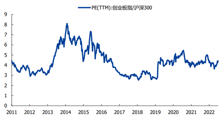 图3:从相对估值角度看,上周创业板估值较沪深300估值上行,长期看沪深300代表的价值风格相对更低估