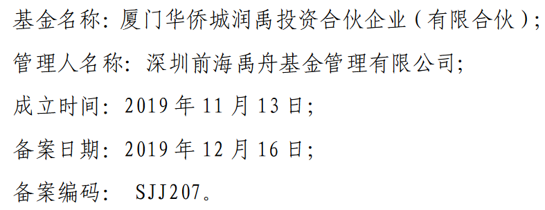 (原标题:华侨城A:完成润禹基金私募基金备案登记)
