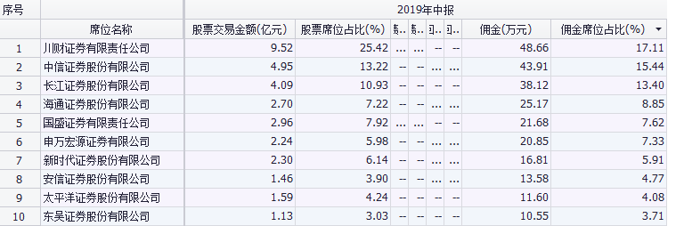 从2019年中报的佣金明细可以看出,民生加银精选基金,只有1亿出头的规模,但是在今年上半年,为川财证券贡献了9.52亿的交易金额。为中信证券贡献4.95亿的交易金额,第三名是长江证券,为其贡献了4.09亿的交易金额。