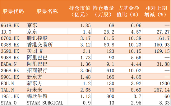 截至今年一季度末,易方达亚洲精选的规模为30.54亿元、和去年年底相比大涨170.27%。股票仓位93.17%,其中港股占基金资产净值的比例为63.91%,美股则为30.84%。