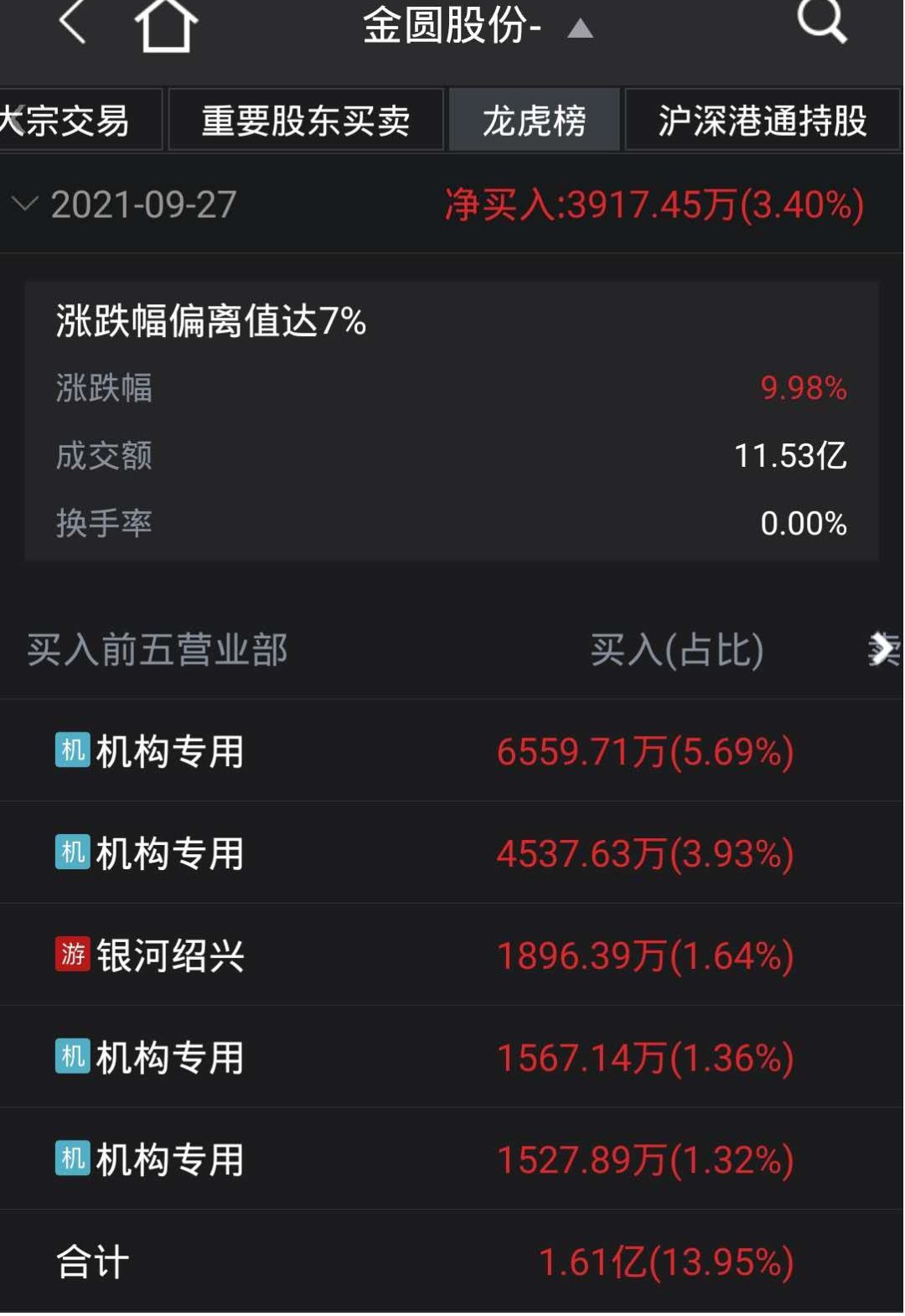 9月27日的龙虎榜数据显示,资金净买入3917.45万元,前买五席位中,4席机构专用席位合计买入1.42亿元。