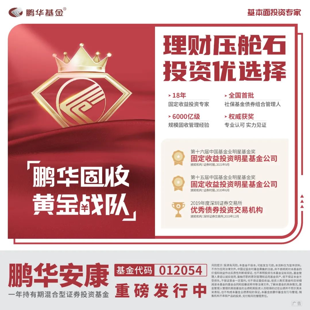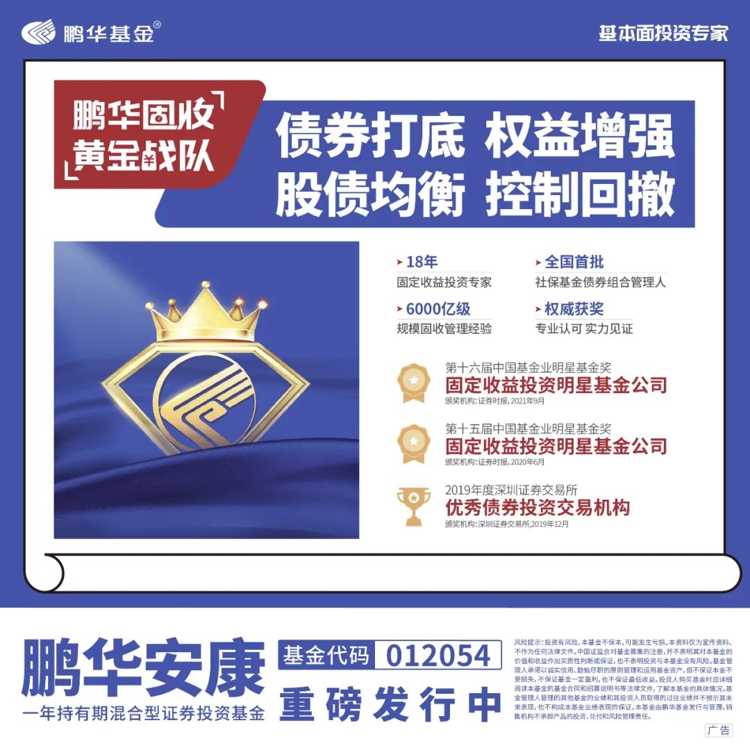 近年来,随着财富管理时代的发展壮大,在银行理财净值化转型的背景下,“固收+”受到市场追捧,引得基金公司争相布局。作为业内固收“黄金战队”,鹏华基金依托强大的投研实力,今年以来持续深耕“固收+”领域,近日又带来全新力作——鹏华安康一年持有期混合基金(代码:012054 ),目前正在重磅发行中,希望通过股债均衡配置打理家庭理财账户,力争帮投资者获取稳健回报的同时,适当分享权益市场机遇。