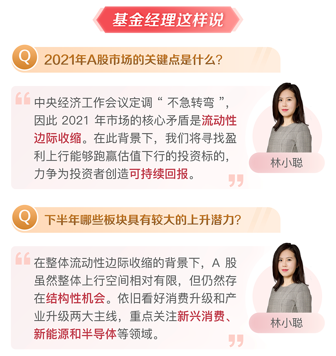 在流动性边际趋紧的背景下,融安积极布局新兴消费和新兴科技两大成长股景气赛道,重点关注包括聚焦年轻人群和新场景的新兴消费、新能源汽车与汽车智能化、半导体等方向。