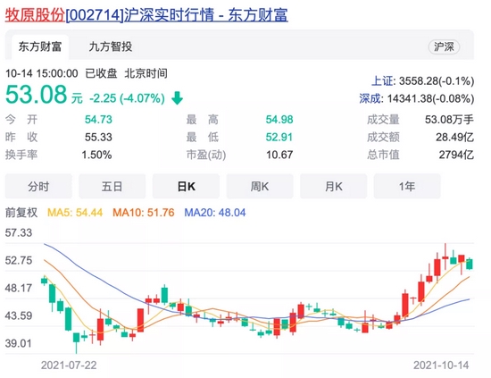 生猪期价主力合约2201自9月24日开始抬头上涨,但近日涨势有所回调。与此同时,多家上市猪企股价开始回升。牧原股份在近10个交易日股价上涨逾20%,正邦科技、温氏股份等猪企股价涨幅也在10%以上。Wind猪产业指数自9月以来涨幅近15%。
