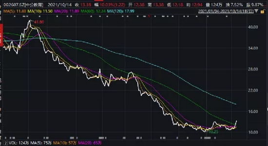 今年对于属于教培行业的中公教育而言,并不是一个幸运年,而这两个连续涨停板也是久违的“高光时刻”。