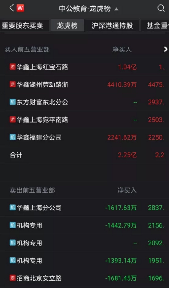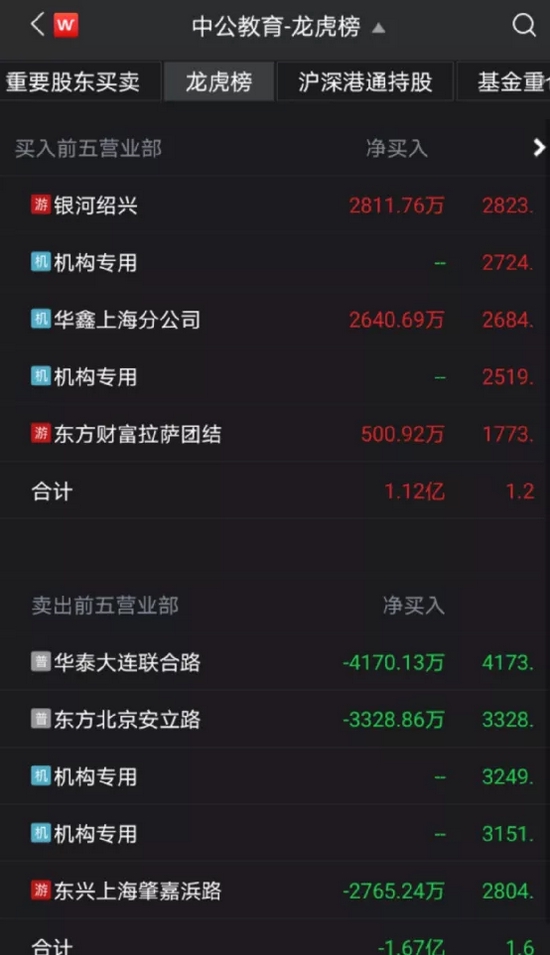 股价连续两天涨停背后,机构资金对中公教育的分歧却十分明显。