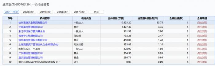 令人惊讶的是,通策医疗第三季度时易方达基金已在前十大机构投资者中消失。按照最低的上榜基金嘉实新兴产业股票的持仓286.7万股来看,易方达优质精选至少在三季度减持了293.3万股。