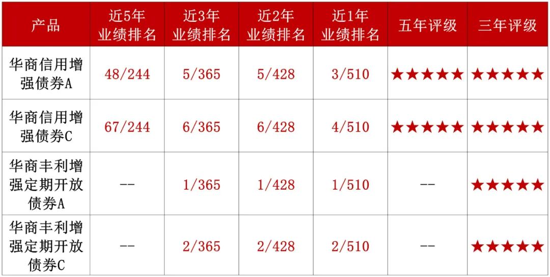 数据说明:华商基金旗下固定收益类基金绝对收益排名评价来自海通证券2021.10.2发布的《基金公司权益及固定收益类资产业绩排行榜》,各只基金业绩排名评价来自海通证券2021.10.2发布的《基金业绩排行榜》,数据截至2021.09.30;近1/2/3/5/7/10年分别指2020.10.09-2021.09.30、2019.10.08-2021.09.30、2018.10.08-2021.09.30、2016.10.10-2021.09.30、2014.10.08-2021.09.30、2011.10.10-2021.09.30;华商双翼平衡混合评价分类为偏债混合型;华商信用增强债券A/C、华商丰利增强定开债券A/C、华商稳定增利债券A/C、华商瑞鑫定开债券评价分类为偏债债券型;华商可转债债券A/C评价分类为可转债债券型。