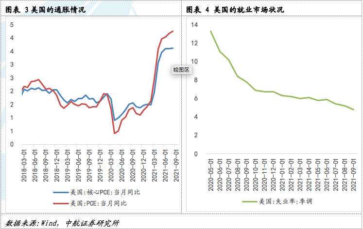 尽管就业数据不及预期,但受能源成本飙升以及供应链中断影响,通胀仍居高不下。美国商务部10月1日的报告称,供应链的中断、旺盛的市场需求以及大宗商品价格的快速上涨加剧了价格压力。8月份通胀率创30年来新高,不包括食品和能源成本的核心PCE环比上涨0.3%,同比上涨3.62%。