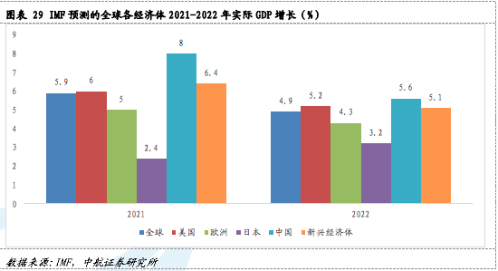 2021年10月IMF的《世界经济展望》(World Economic Outlook)中,国际货币基金组织(IMF)将中国2021年的增长率定为8.0%,较7月份的预测下调0.1个百分点,并预测2022年中国经济增长将保持在5.6%左右。而相比之下,受供应制约及消费疲软影响,美国经济增长被大幅下调1个百分点,2021年将增长6.0%。中国良好的发展前景和进一步开放的政策将继续吸引外资。