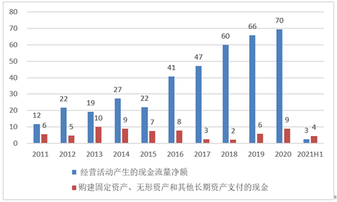 根据近十年资本性支出与经营活动净现金流对比可以看出,公司随着收入规模增长现金流持续增长,但是资本性支出始终维持较低位置,如下图: