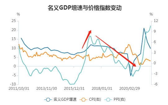 通过宏观GDP及CPI等走势图可以看出,2016年底涨价前,我们的宏观经济增速有所恢复,而后增速有所趋缓。