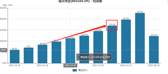 值得一提的是,最早依靠酱油起家的海天味业,如今市值竟然远超地产龙头万科。截止10月21日收盘价,海天味业市值为4929亿元,而同期万科市值仅为2349亿元,海天味业的市值体量相当于是2个万科。