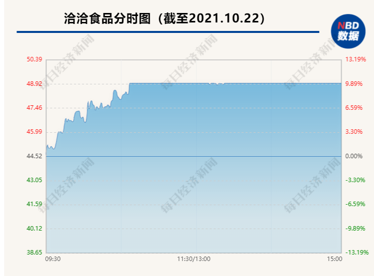 10月22日,国内炒货龙头洽洽食品(002557.SZ)在开盘后一小时左右涨停,报48.97元/股。